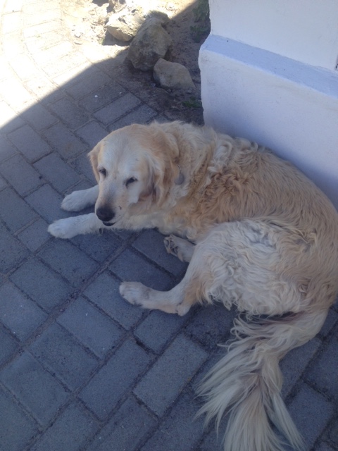 On the second day of our holiday we noticed three salty sea dogs, including a gorgeous golden retriever, frolicking on the dunes and we rushed over to make friends as you do. Just that morning I’d been wishing that my dog was there and missing her so this felt like providence, truly. After that they came to visit us every morning and evening at sunset like clockwork, it was a wonderful thing to be sure about and became the highlight of my stay. Two of the dogs belonged to an owner of a guesthouse up the road who moved here thirteen years ago, after 30 plus years of city living in Joburg and thought it was rather sweet how their animals had taken to us and decided to see why.